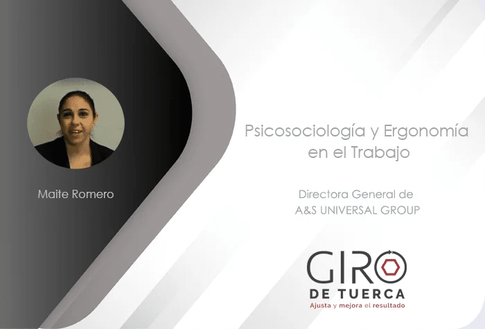 Te compartimos en esta cápsula de Giro de Tuerca donde nos acompaño la Directora General de A&S UNIVERSAL GROUP, Maite Romero Maestra en Ergonomía y Psicosociología aplicada con 20 años de experiencia nos platica como influye en trabajo la Psicosociología y Ergonomía. “Siempre que tu estés bien, vas a hacer las cosas bien”.